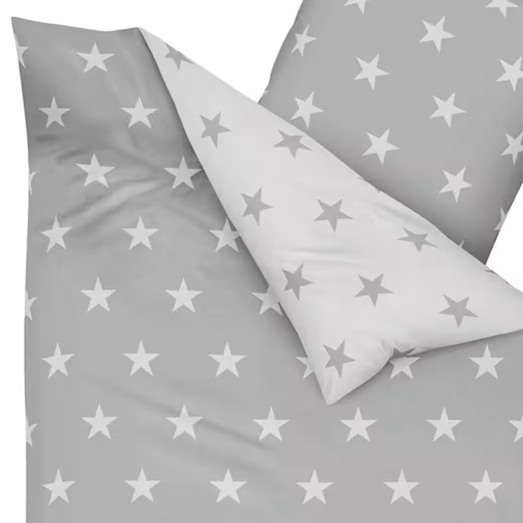 Feinbiber-Wendebettwäsche "Stars" aus der Serie Kleine Nachtmusik. Allover modern und stilvoll mit Sternen bedruckt. Eine attraktive Kreation, die in jedem Interieur ausdrucksstark zur Geltung kommt. In der kühlen Jahreszeit genießen Sie unter dem kuscheligen, samtig aufgerauten Flor wohlige Wärme. Er ist besonders weich im Griff und anschmiegsam. Pflegeleicht, bügelleicht und einfach zu beziehen dank Reißverschluss. Hautfreundliches, atmungsaktives, temperaturregulierendes Gewebe.