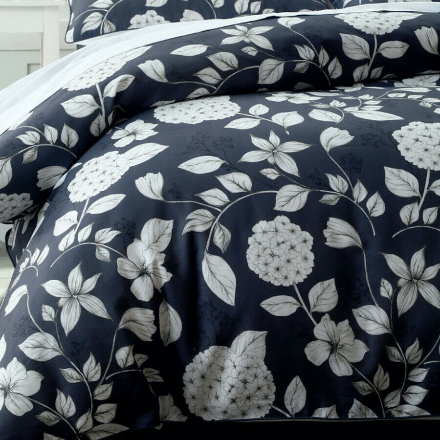 Bettenring Satin Bettwäsche Hydrangea Fb. Blau