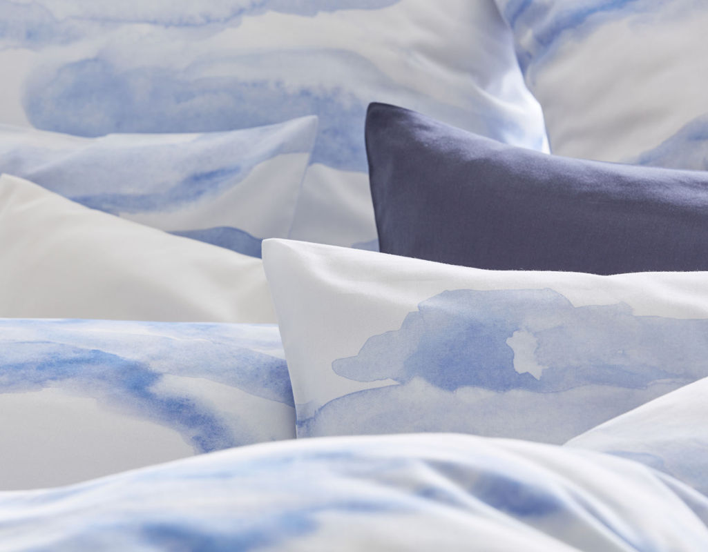 Mit dieser Bio Satin-Bettwäsche von Cotonea schlafen Sie wie auf Wolken. Handgemalt in fließendem Aquarell, schweben die bläulichen Wolkengebilde wie von selbst über das Himmelweiß des hochwertigen Bio-Baumwollgewebes. Derart luftig und leicht gebettet, gleiten auch Sie mit dieser himmlischen Bettwäsche in das Land der Träume. Hergestellt nach dem weltweit anspruchsvollsten Richtlinien für Naturtextilien, dem IVN Best.