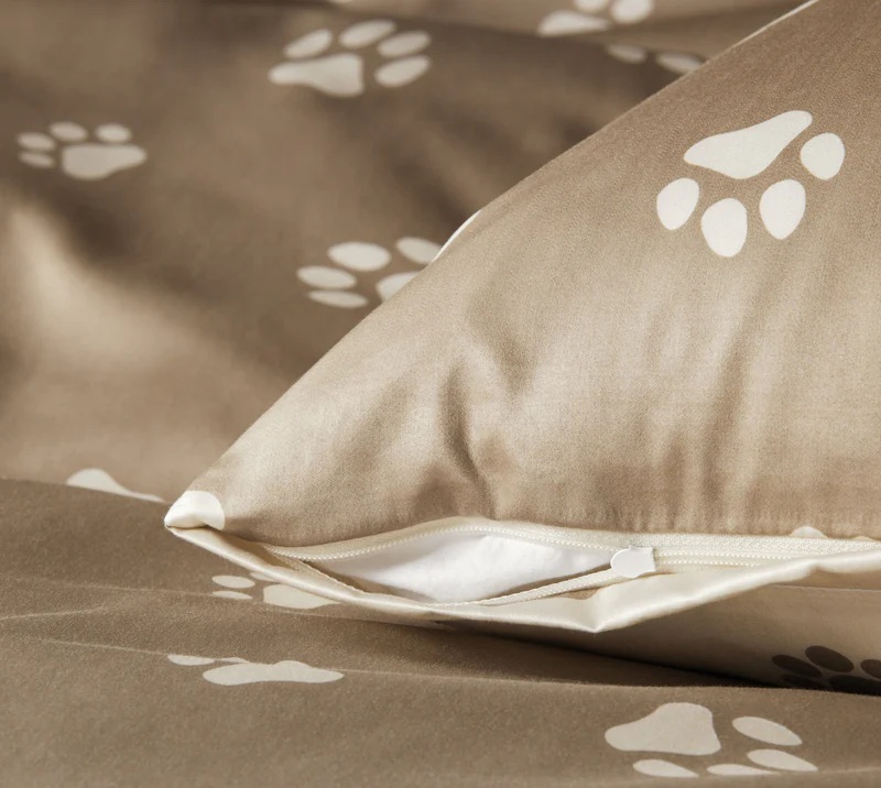 elegante Mako Satin Wendebettwäsche Paws - Fb. 07 Natur-Beige