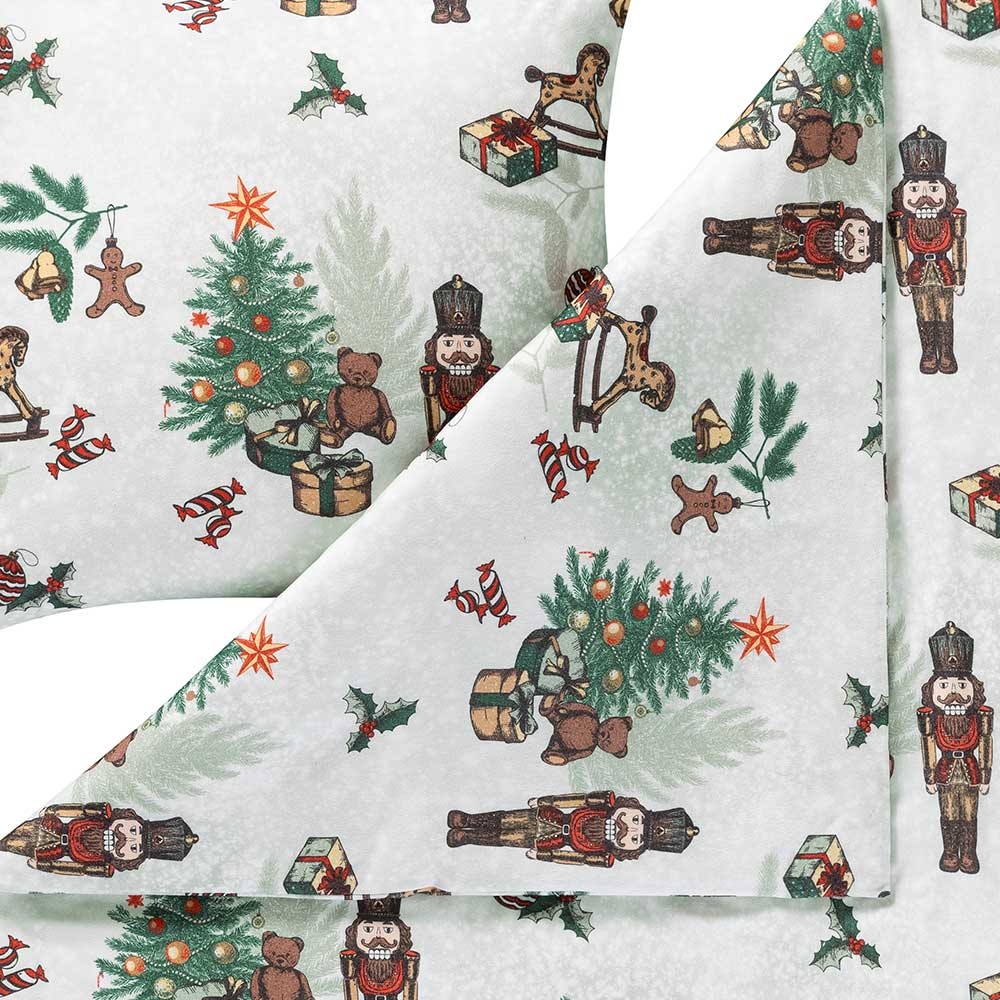 Die Bettwäsche Nutcracker in der Farbe Rot verwandelt dein Schlafzimmer in ein weihnachtliches Winterwunderland. Das charmante Design mit klassischen Nussknackerfiguren, reich geschmückten Tannenbäumen, Lebkuchenmännchen, Zuckerstangen und festlichen Geschenken bringt festliche Stimmung in jedes Zuhause. Die detailverliebten Illustrationen auf hellem Fond erinnern an nostalgische Weihnachtsträume und machen diese Garnitur zu einem echten Highlight in der Adventszeit.