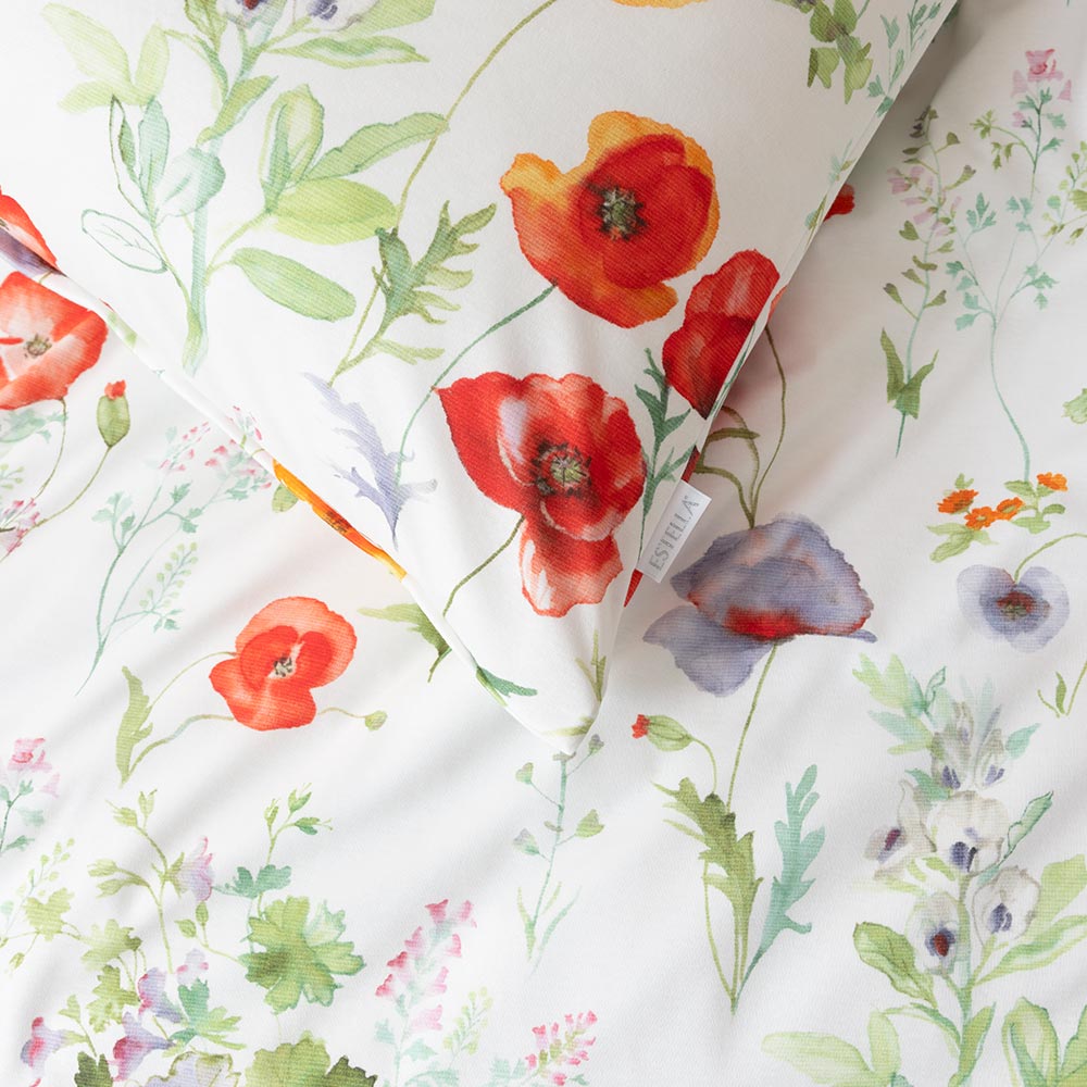 Ein Sommergarten fürs Auge ist die Garnitur Mireille. Der Grund: leuchtende Blüten in Rot, Orange und Violett, die sich auf einer weißen Basis platzieren. Der fröhliche Aufdruck bringt Lebendigkeit in deine Räume und bettet Sie jede Nacht wie auf Blütenblättern. Verleihen Sie dem Set, ihre eigene Note mit farblich abgestimmten Kissen, Tagesdecken sowie deinen ganz persönlichen Kuschelaccessoires. Et voilà!