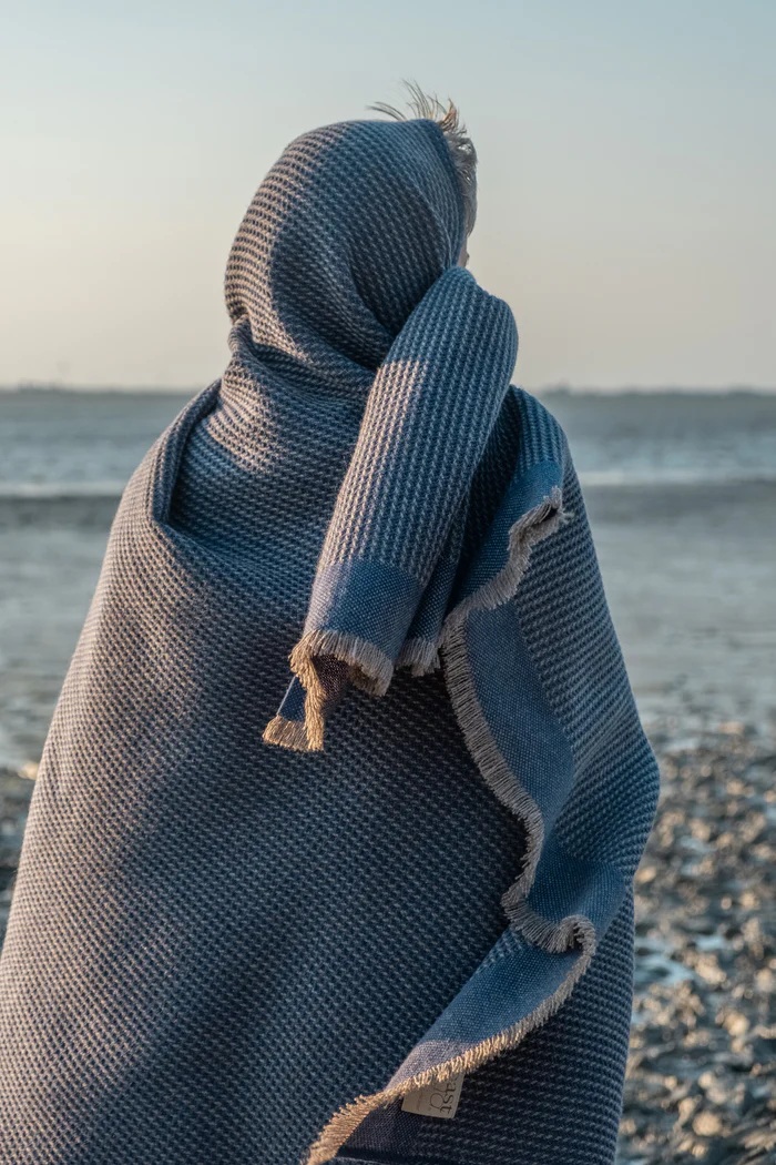Eine edle Decke aus reiner Schurwolle im klassischen Waffel-Piqué mit gekämmter Franse. Erhältlich in fünf natürlichen Farbkombinationen, die von der friesischen Landschaft inspiriert und auf mongolischer, wattgrauer Merinowolle gewebt sind. Die Fusion zweier Wollen im Waffel-Piqué ergibt nicht nur eine besonders schöne, sanfte Farbwirkung, sie besticht auch durch einen feinen Glanz und geschmeidigen Griff.