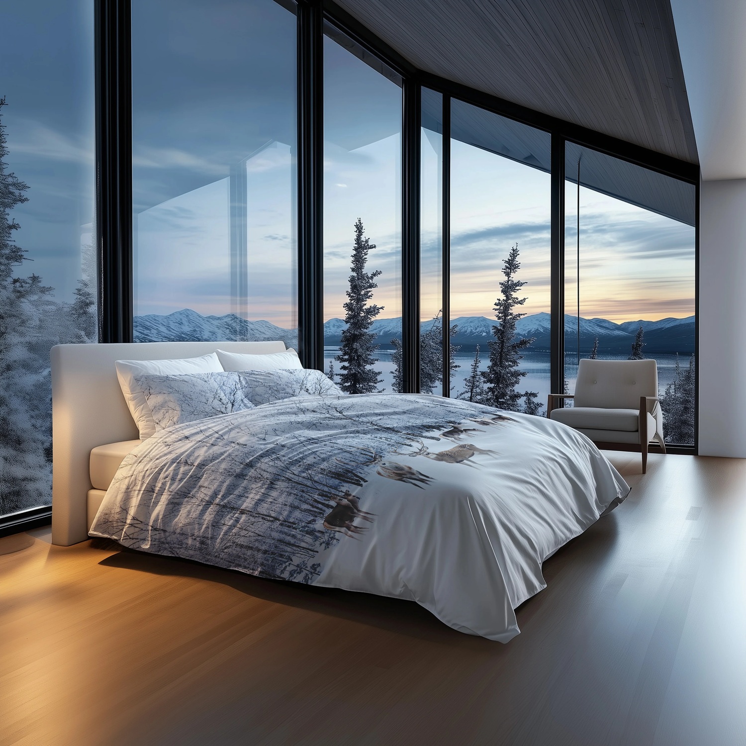 Der Bettbezug Pelle von Heckettlane erweckt einen winterlichen Wald mit Rentieren im Schnee und einem Rücken voller weicher Schneeflocken zum Leben. Hergestellt aus 100% Baumwollsatin, fühlt es sich wunderbar weich an und sorgt für ein gemütliches, luxuriöses Schlaferlebnis. Perfekt für alle, die Wärme und Stil im Schlafzimmer kombinieren möchten.