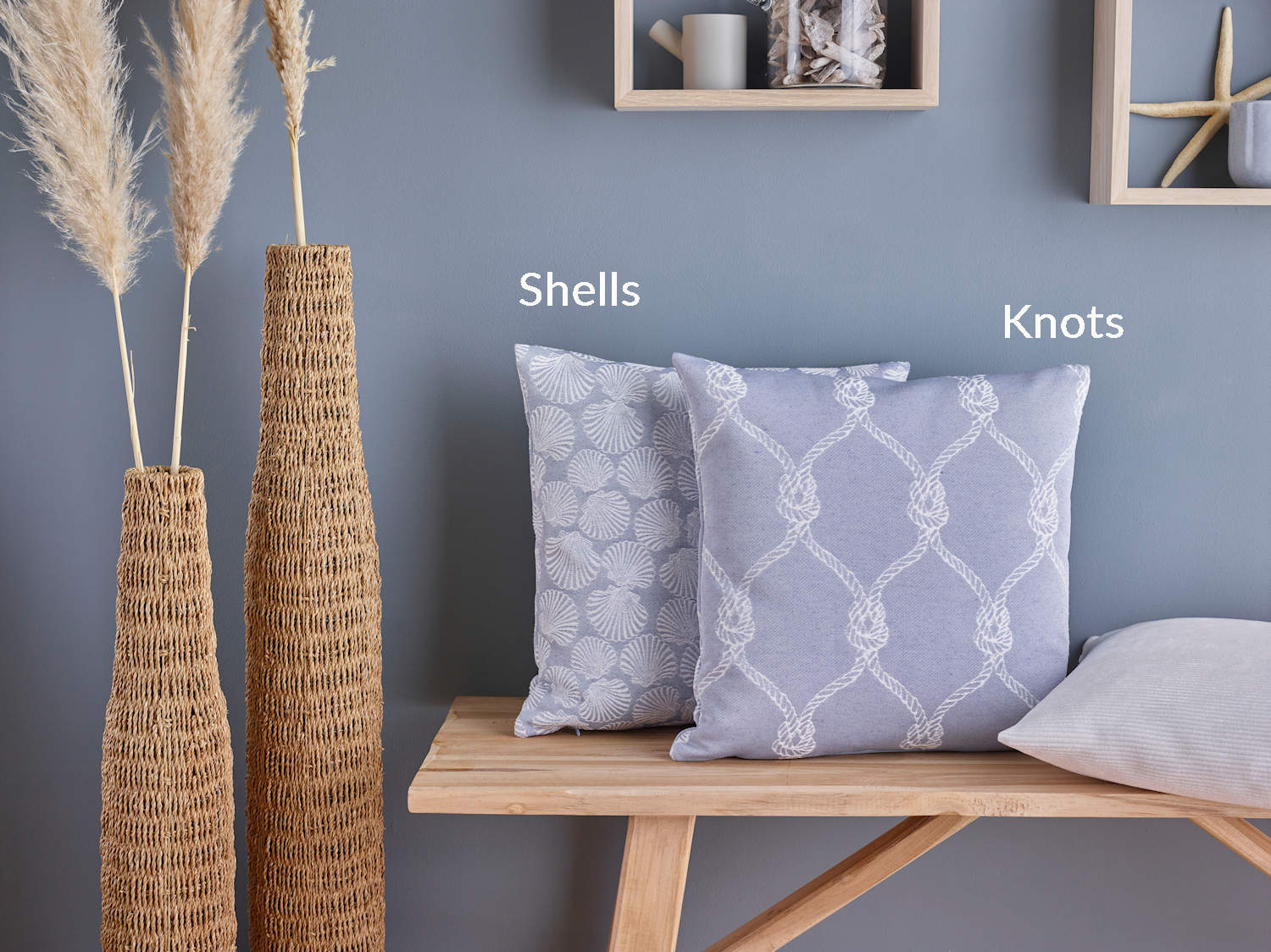 Kissenbezug mit maritimen Design auf einem Bauwollmischgewebe in zwei Farben. Die Serie SHELLS aus Jacquard mit dem sommerlich leichten und eleganten Design aus Muscheln bringt eine maritime und lebendige Atmosphäre in Ihr Zuhause. Ob für ein romantisches Abendessen zu zweit oder eine Geburtstagsfeier mit Freunden und Familie, SHELLS ist der perfekte Begleiter und macht jedes Essen zu einem luxuriösen Erlebnis.